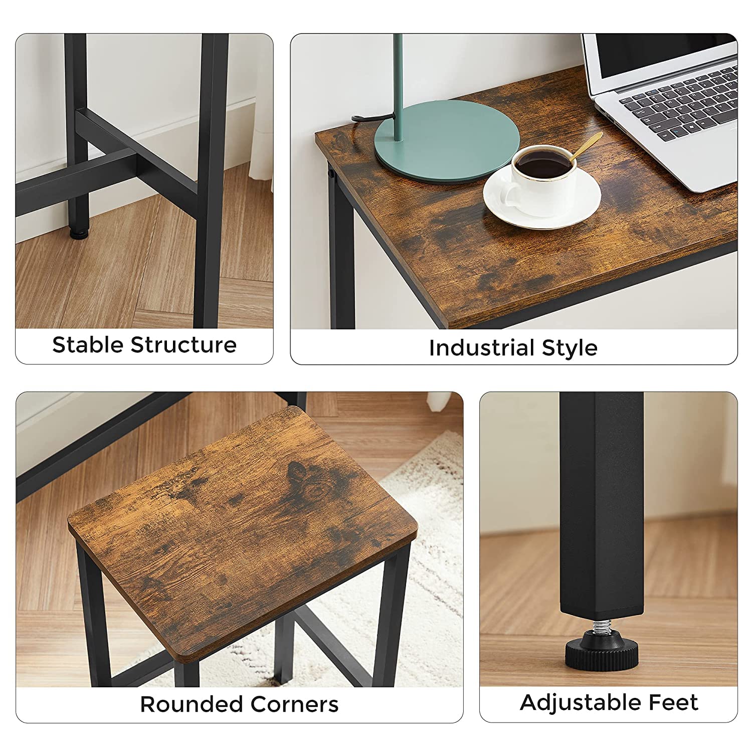 Engineered Wood & Metal Dining Table Set with 2 Stools for Bar | Wooden Table Chairs Kitchen Bar Height Table with Stools | Rustic Brown & Black