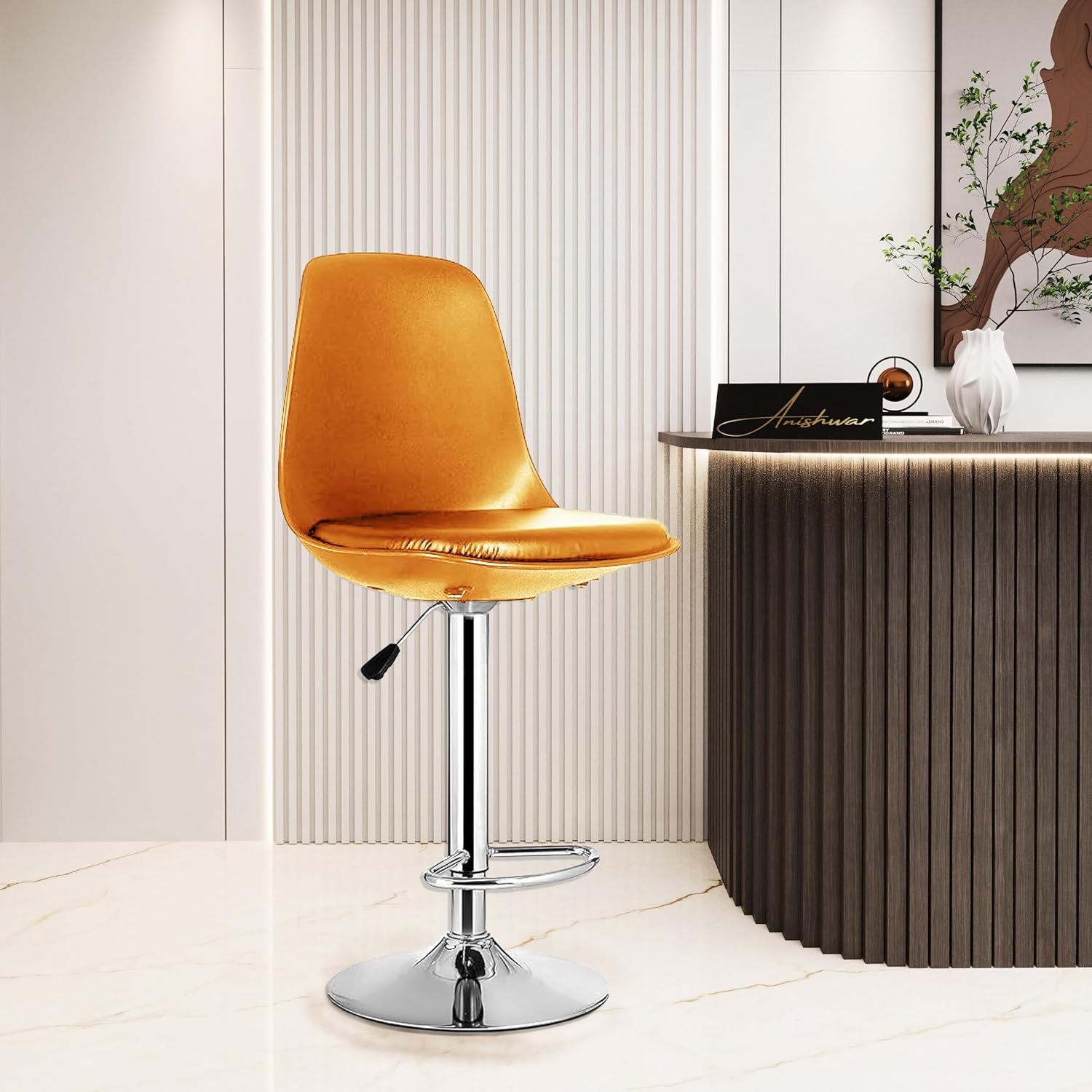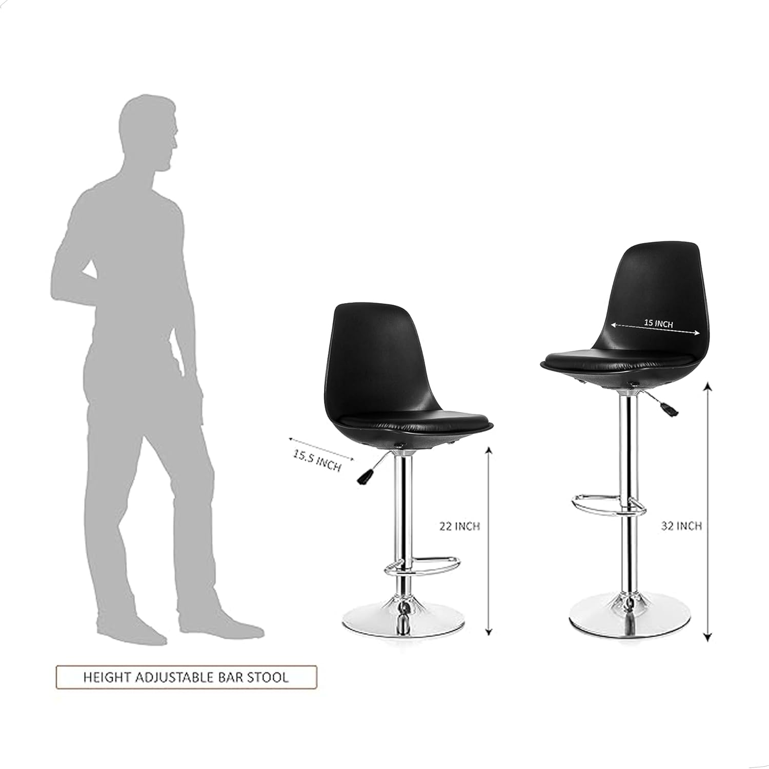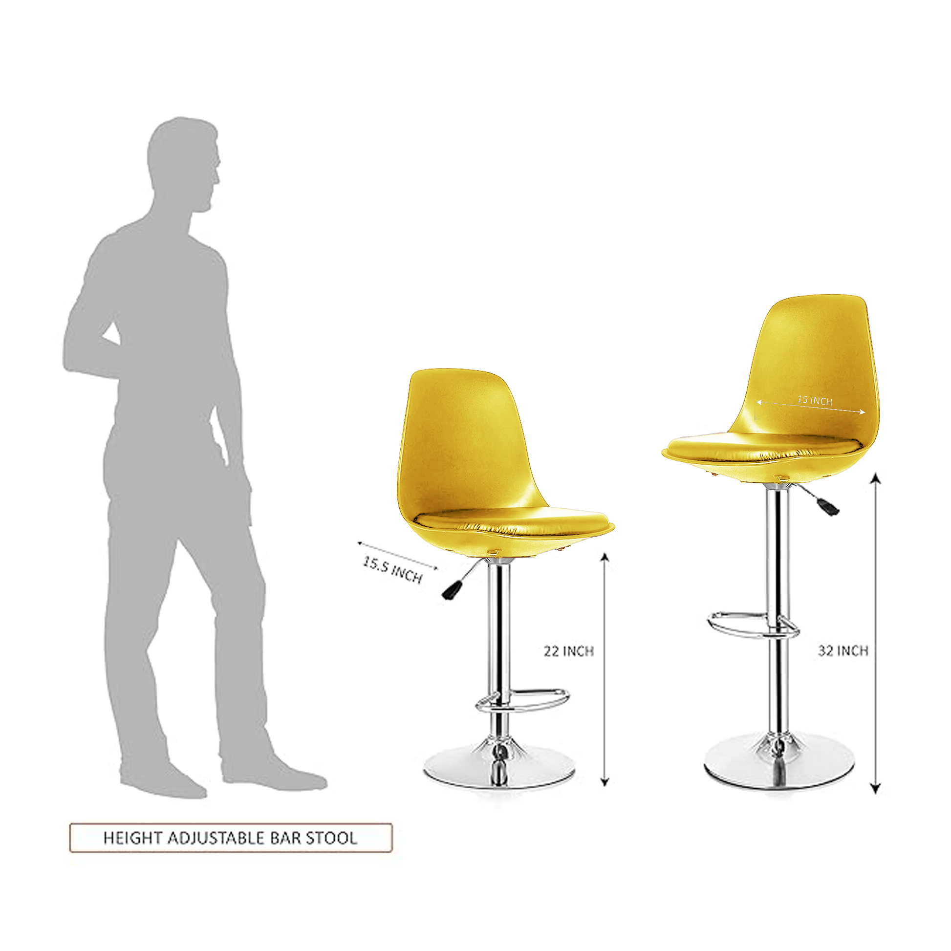 Product Size: Seat size- ( L - 15.5'' Inches ) x ( W - 14.5'' Inches ), Seating Height- Adjustable From 22'' to 32'' Inches The stools have a 360-degree swivel base, enabling easy rotation and movement while seated. These swivel bar stools feature an adjustable height mechanism, allowing you to customise the seat height to suit your needs. The stool stands of our bar stools on a sturdy circular chrome steel base, which has a rubber ring to prevent your floor from scratching. And rubber ring of barstools also prevent the harsh sound when moving the bar chairs. Experience the perfect blend of modern and classic design with our premium bar stools. These stylish and functional pieces are ideal for home bars, restaurants, coffee shops, terraces, or any space where you want to create a welcoming and inviting atmosphere. Our bar stools are designed for easy assembly, saving you time and effort. With clear instructions and minimal tools required, you can have your new bar stools set up and ready to use in no time. Enjoy the convenience of hassle-free assembly and start enjoying your new seating options right away.