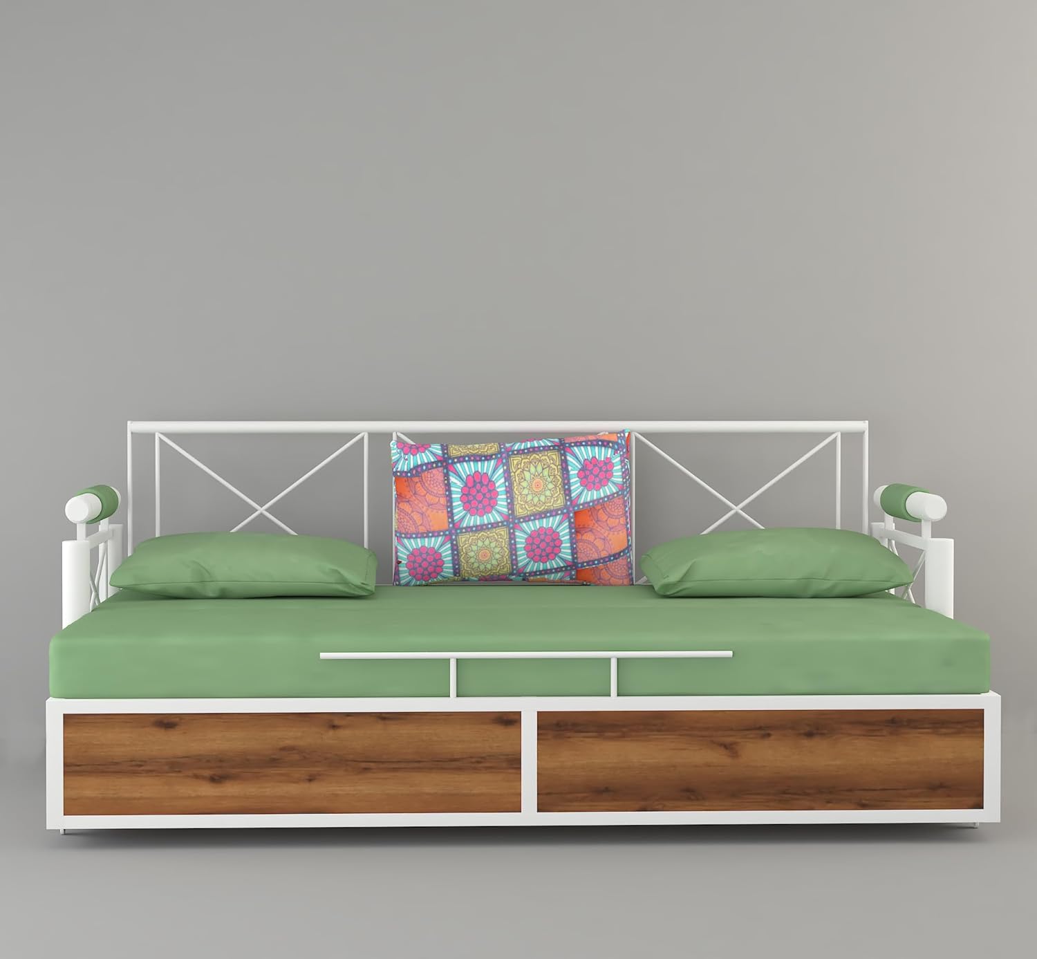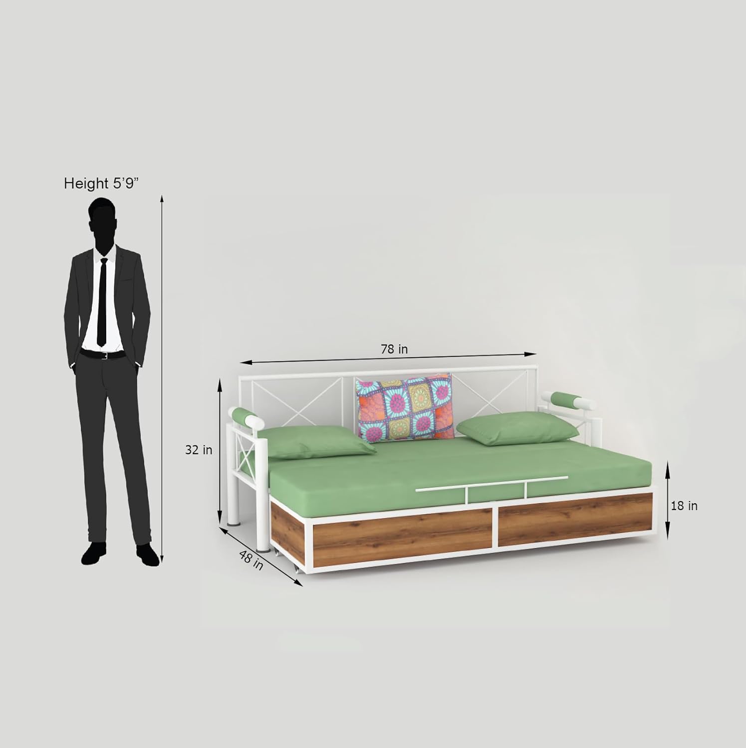Product dimension (in Inch) :- Length 78 x Width 48 x Height 32 (Inches) Seating Height (18 Inch) Durable Construction: Features a strong white metal frame combined with high-quality wood accents for a robust and long-lasting structure. Versatility and Use - The Scott Sofa Cum Bed is an ideal choice for apartments, studio flats, or any home where maximizing space is essential. It can be placed in the living room, guest room, or even used in a home office or study as a comfortable seating option that can quickly transition into a sleeping space for overnight guests. The neutral color palette, combined with the elegant metal and wood finish, ensures that this piece will seamlessly blend into any room, complementing your existing decor. Storage Space - In addition to its versatile functionality, the ANISHWAR Scott Sofa Cum Bed includes smart built-in storage. The storage compartment, concealed under the seat cushions, provides ample space to store bedding, cushions, or other household items that need to be tucked away neatly. This feature adds practicality to the design, helping you keep your living room organized and clutter-free. It’s the perfect solution for homes where every bit of storage counts, and the furniture itself offers extra utility beyond seating and sleeping. Sofa Cum Bed Feature - The sofa cum bed is designed for convenience, with a mechanism that allows you to effortlessly convert it from a sitting to a sleeping arrangement. When used as a bed, it offers a cozy, wide surface for a restful night’s sleep or an afternoon nap. The transformation is smooth and quick, making it perfect for moments when space is needed but you don’t want to sacrifice comfort. Low Maintenance: Easy to clean and maintain, ensuring a hassle-free experience for the user. Assembly Instruction : The product require (Do-it-your self) basic self assembly at customer end not require any carpenter and comes with self assembly instructions along with necessary accessories.