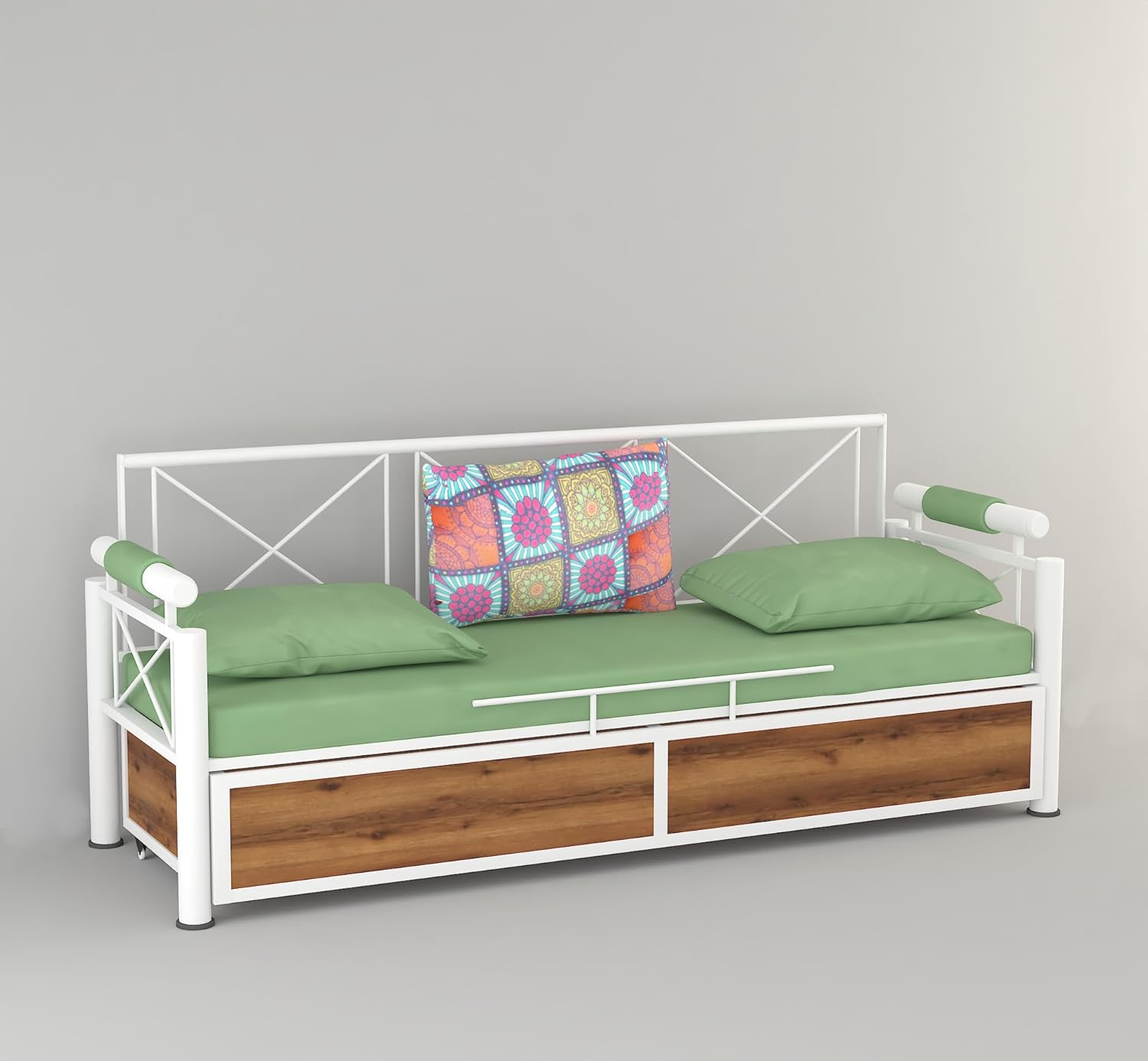 White Metal Framing and Wood 3 Seater Sofa Set Scott Sofa Cum Bed with Storage Furniture for Living Room Convertible Sofa Bed for Home Furniture